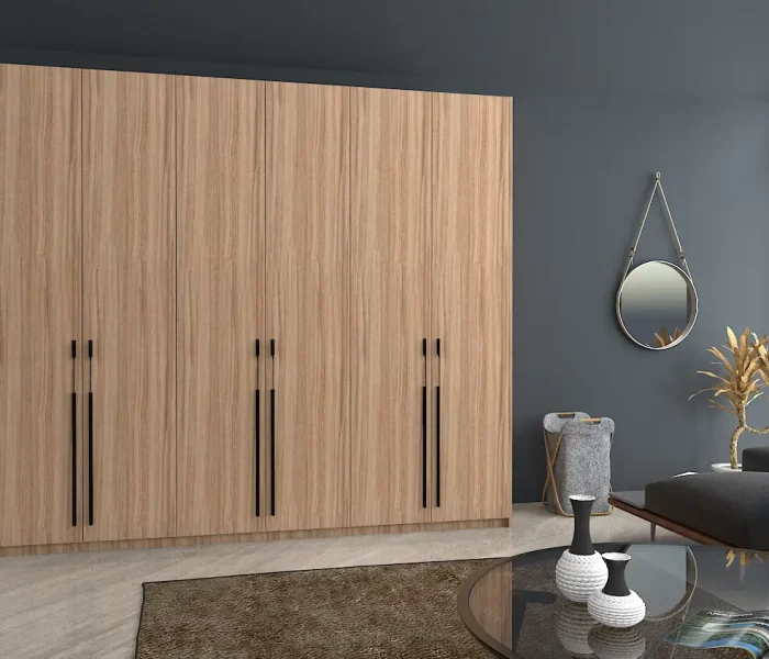 lacquered veneers offer a clean finish that adds value to your well-planned room. The wardrobes are also